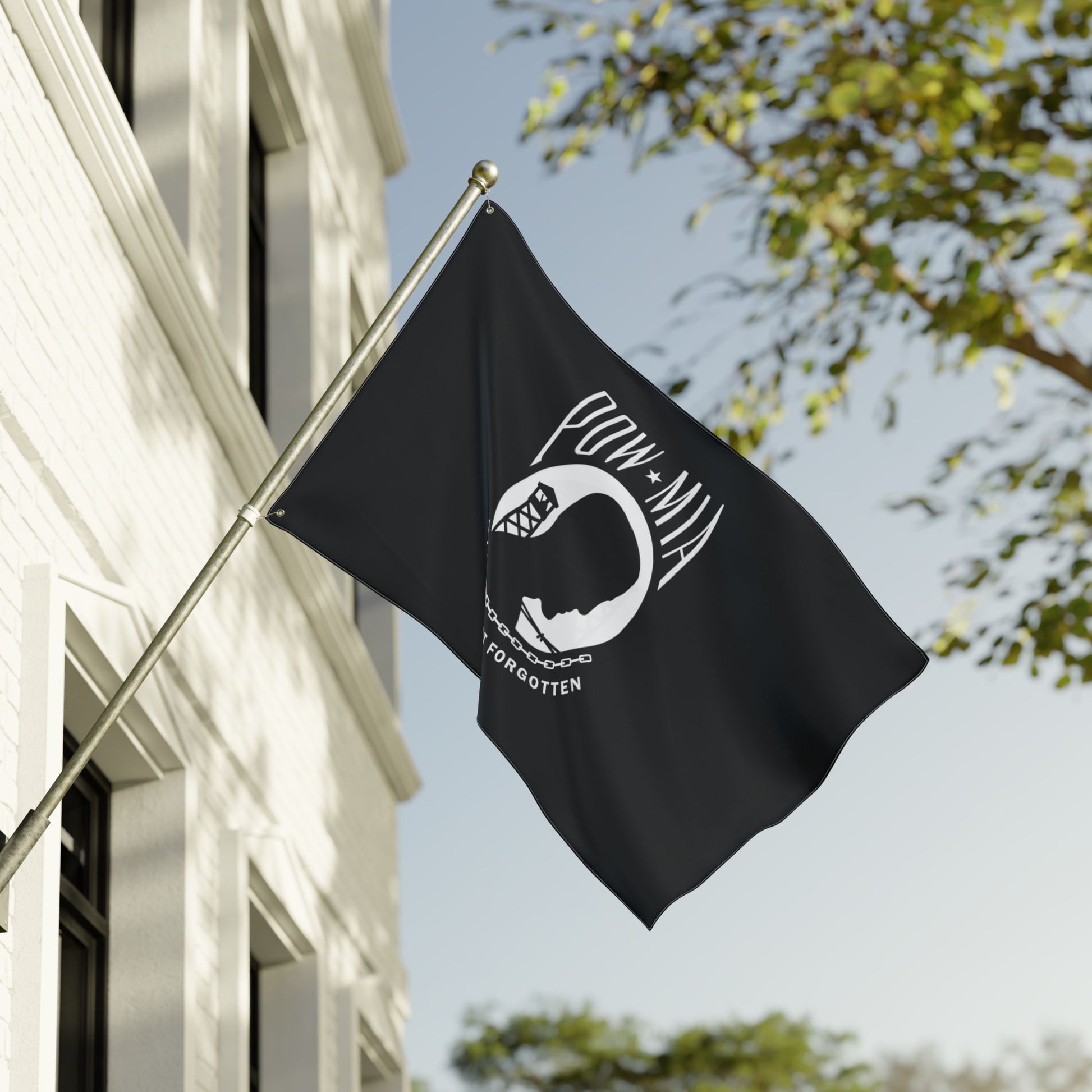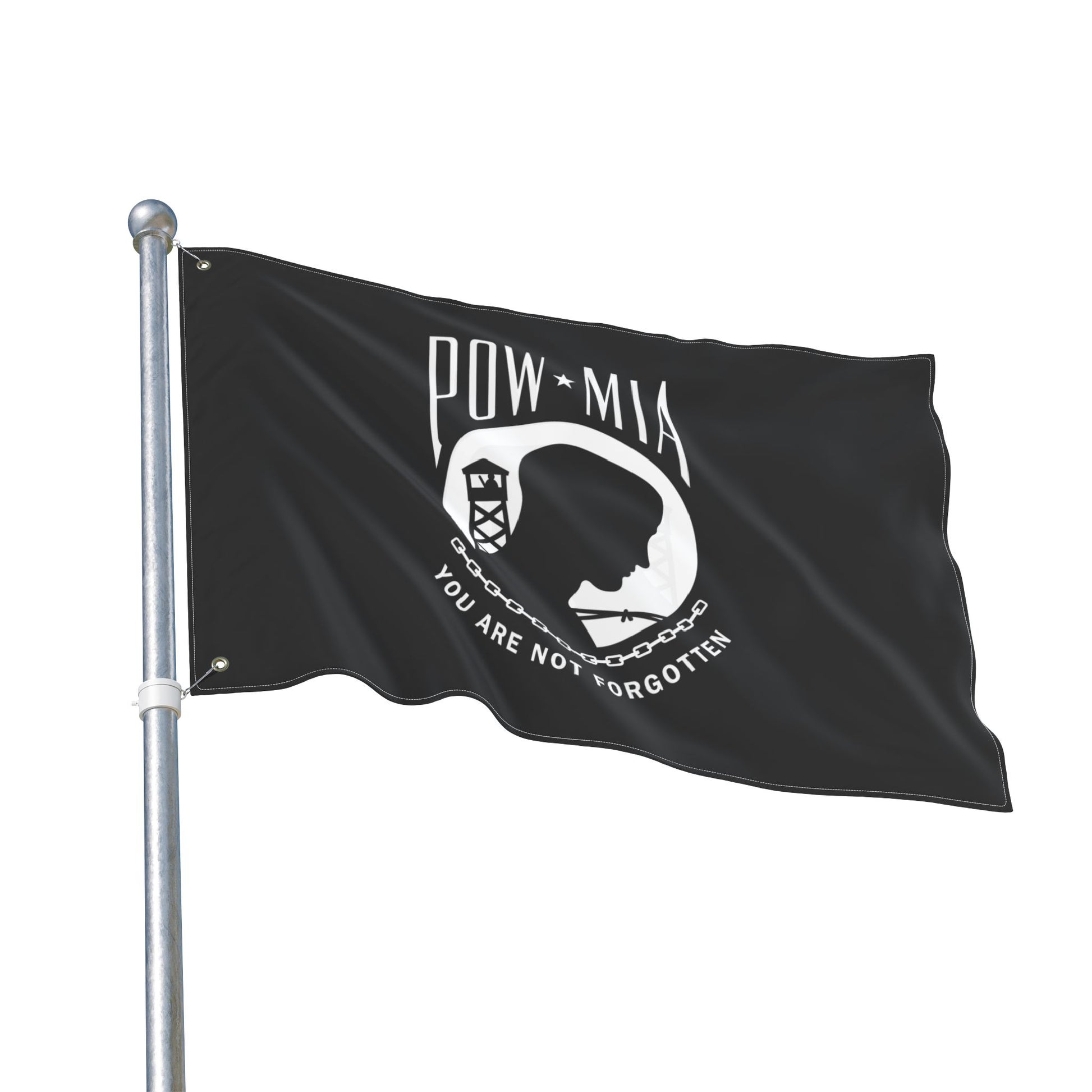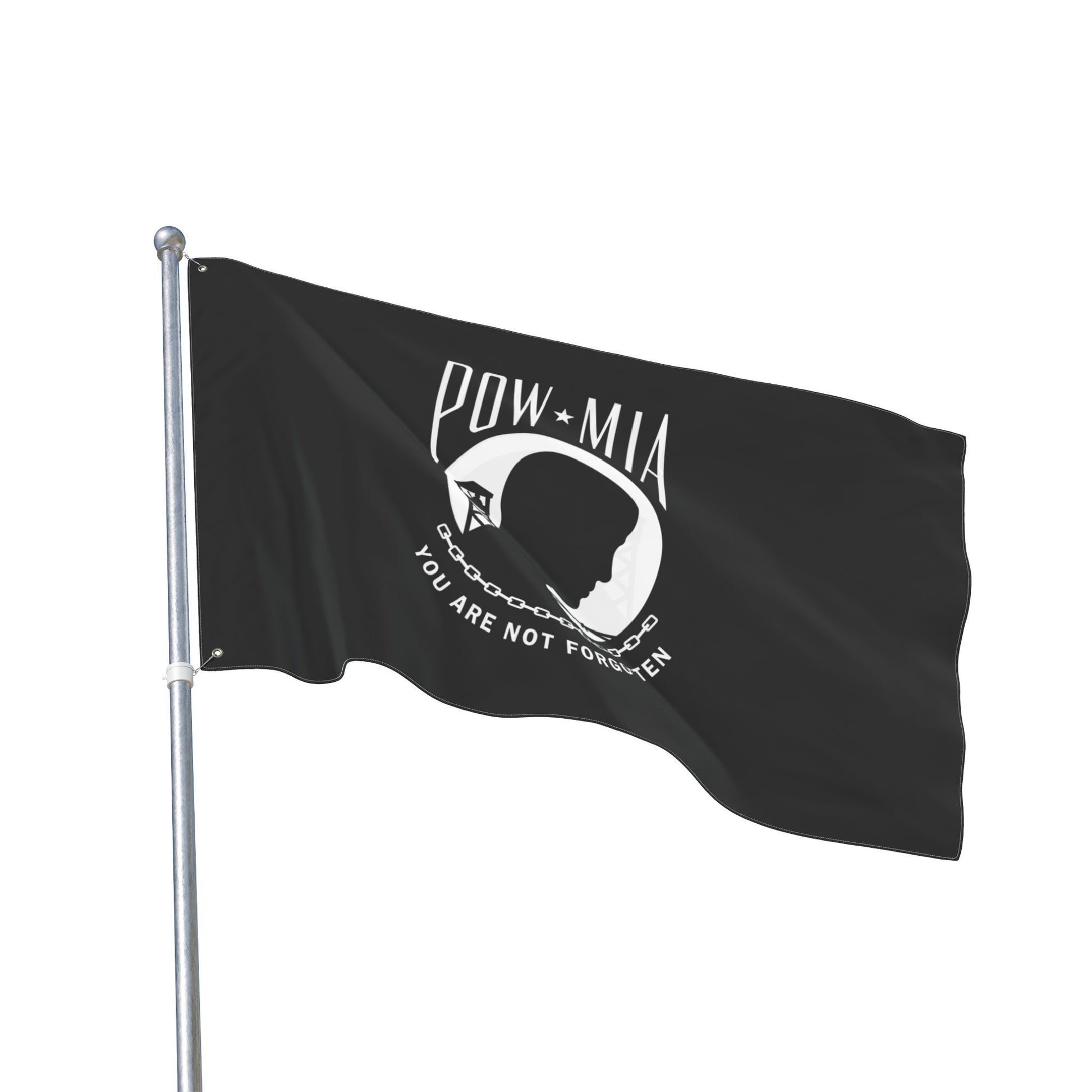 Remember those we have lost by flying the POW MIA flag. Made from 100% durable polyester, this flag is designed to withstand the elements while maintaining vibrant colors and high visibility. With its double-sided design, you can showcase the design on both sides, ensuring that it looks great from any angle.